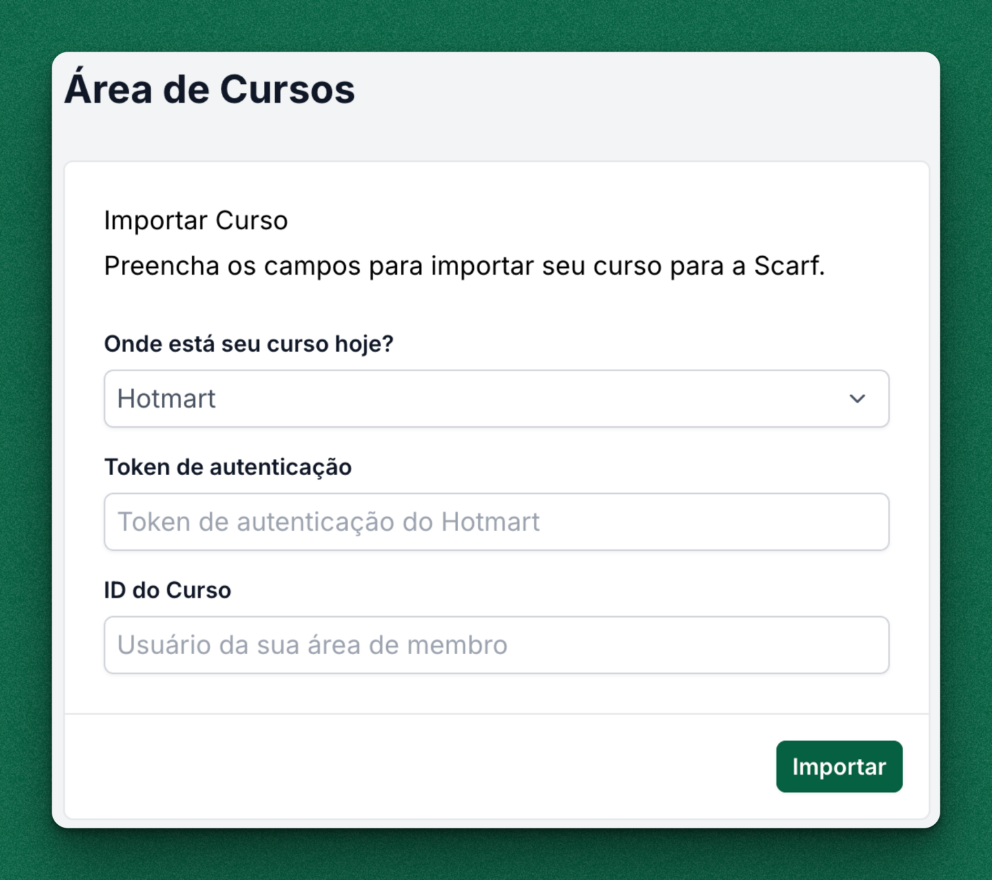Dica: O processo de importação pode levar alguns minutos dependendo do tamanho do curso.